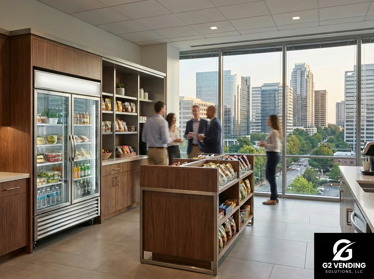Dunwoody is one of metro Atlanta’s premier business addresses — a dense concentration of corporate offices, financial services firms, medical facilities, and fitness centers. The professionals who work here expect quality, convenience, and reliability. G2 Vending Solutions delivers exactly that.